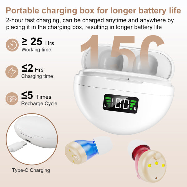 Skip the clinic visits and insurance hoops—our hearing aids arrive ready to use (no app or coin batteries) and switch modes with a quick tap for home or busy rooms. For many adults with mild–to–moderate hearing loss, they deliver the everyday speech clarity people need at a fraction of the price of traditional clinic devices, and arrive much sooner.
